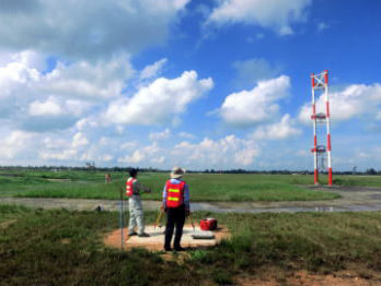 概要 | シェムリアップ国際空港において一次基準点(PACS)2点及び二次基準点(SACS)7点を設置し、空港標点、滑走路末端、無線施設、障害物のWGS-84座標を取得する。 |