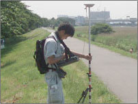 ネットワーク型RTK-GPSは、30Kmから70Km程度離れた電子基準点のリアルタイムデータを利用し、短時間で高精度位置を得ることができる測量方式です。ネットワーク型RTK-GPS測量には実証実験により精度が確認されたVRS方式及びFKP方式の2方式があります。弊社ではFKP方式を採用しているPASを使用しています。ネットワーク型RTK-GPSは一人で観測ができ、設置から観測終了まで10分ほど(場所にもよりますが)で座標を決定できる為、効率よく作業を行うことができます。