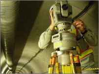 ジャイロとは直交した3軸で支えられるコマです。高速回転するジャイロ(コマ)の回転軸は常に空のある一点を指します。その回転軸は地球自転の影響で最終的に子午線方向へと安定します。ジャイロ測量とはこのジャイロの性質を利用して北の方向を決め、方位を測定する作業のことです。トンネル内の測量は地上で行う作業と異なり周囲の測点が見えず方向を決めるのが難しいため、オートジャイロで北の方向を決めながらトンネルの掘進方向を正確に決めていきます。